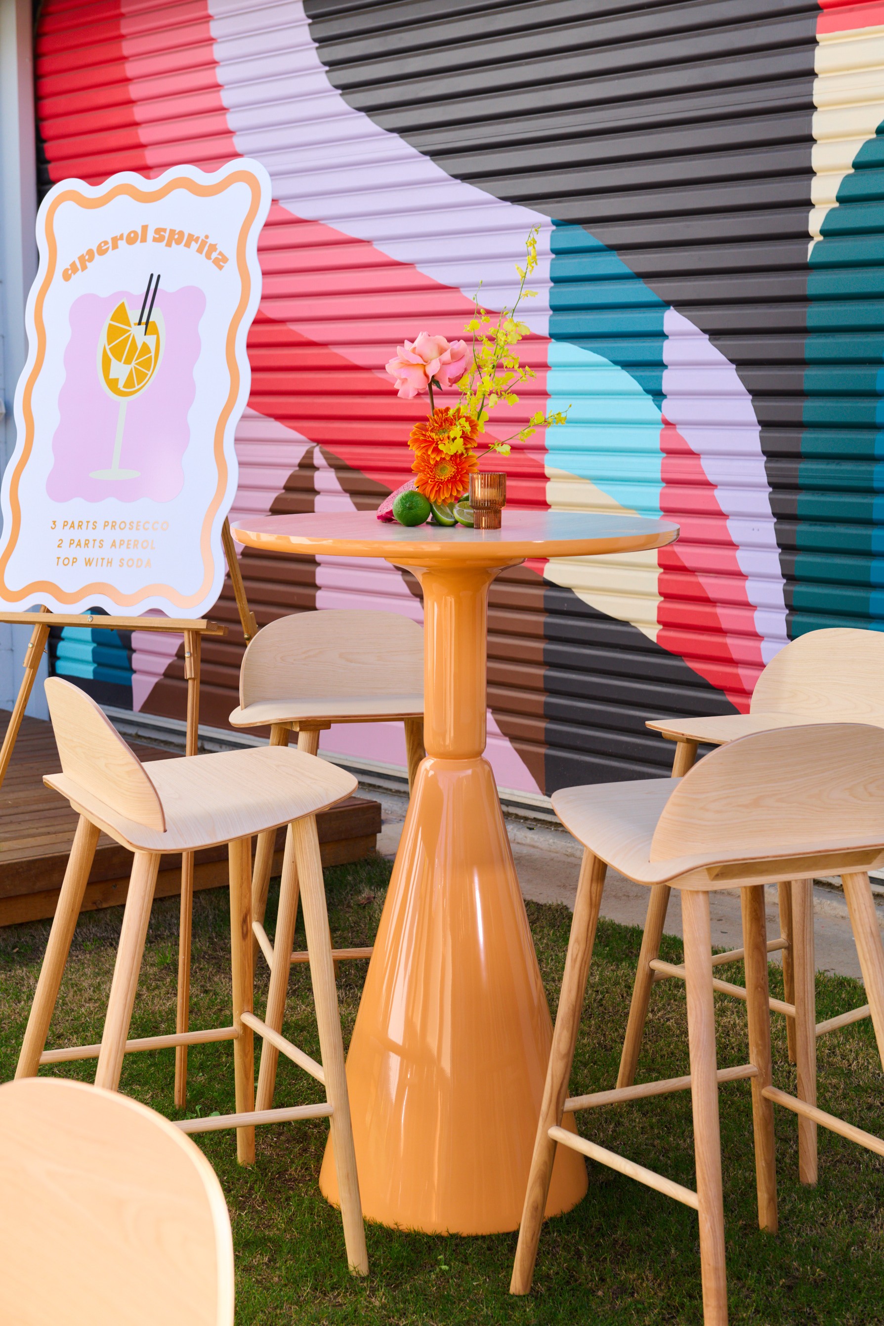 Bring a touch of retro flair to your event with our Celine High Bars. Featuring a distinctive flared base design, these bars are available in a curated range of on-trend colours including black, cream, warm apricot, and olive green. With a mix of glossy and matte finishes, the Celine offers a bold yet refined look that suits everything from modern cocktail parties to creative brand activations. A standout piece for those who want to style with personality and impact.