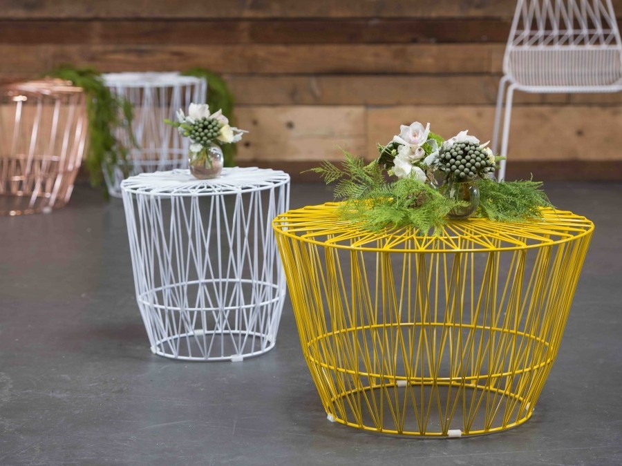 Our Cleo coffee table is an easy and lightweight way of providing guests with additional table space at your next event. Standing at a compact 0.46m, the Wire coffee table has a spacious top spanning 0.75m in diameter, resulting in plenty of room for food and drinks! With an optional glass top, our Wire coffee tables are perfect when hired alone, or pair them back with our Blofield Chesterfield Lounges for a modern, contemporary feel.