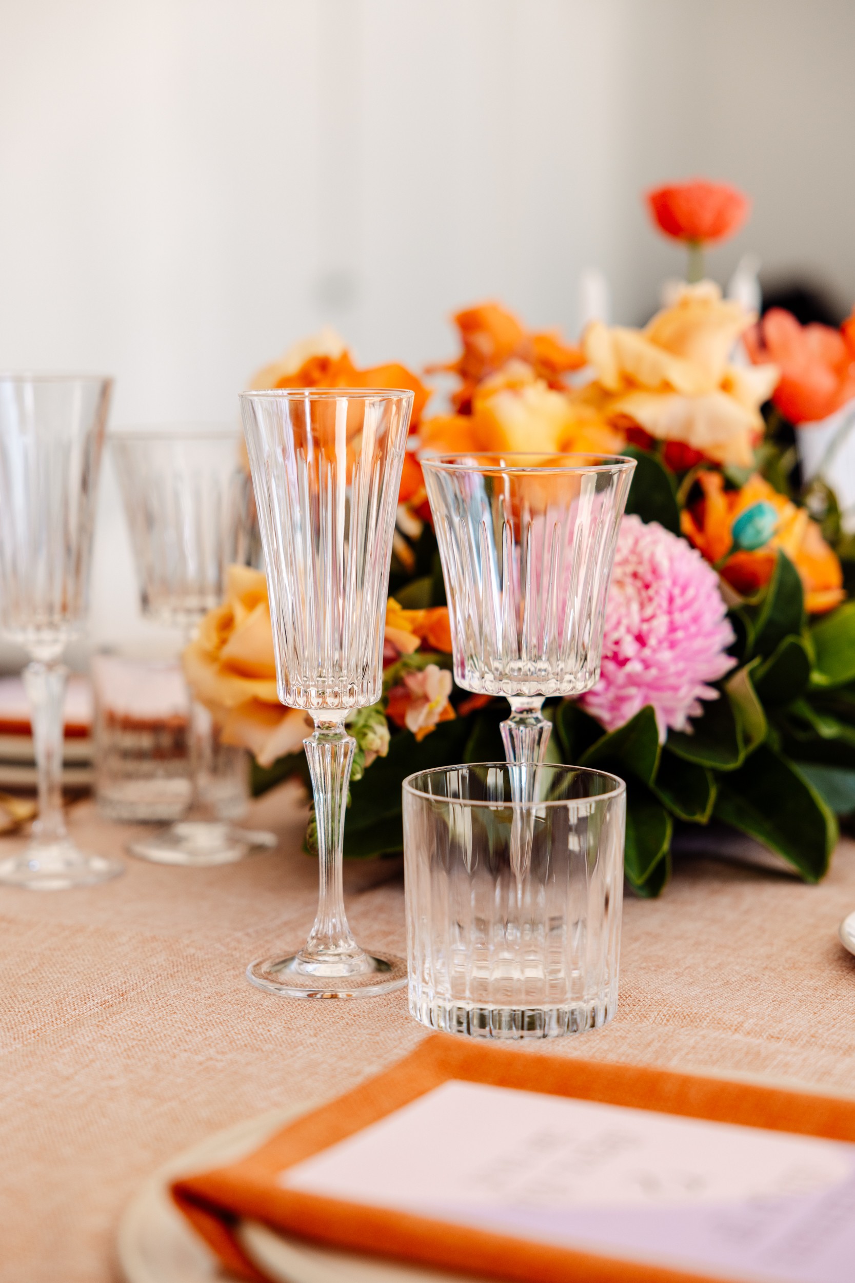 Add a touch of vintage charm to your event with our Diamond Crystal Glassware range. Inspired by retro glassware designs, each piece features intricate diamond-cut detailing that catches the light beautifully. Perfect for cocktails, water, or sparkling toasts, this range brings timeless elegance to any table setting.
