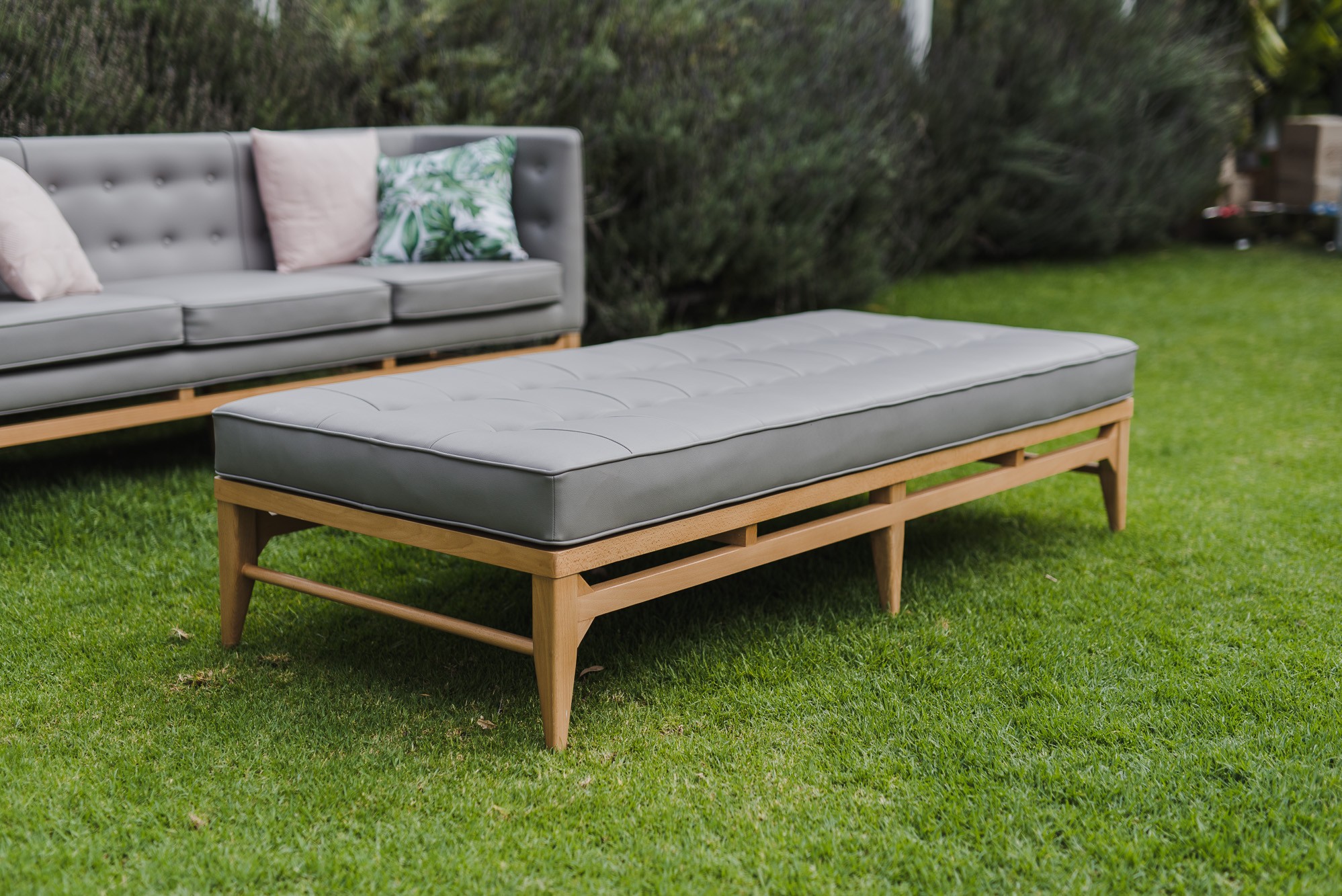 When space is a limited commodity, our Lola Oak Ottoman is a must have piece. Boasting classic stud detailing complemented by beautiful oak legs, the versatile design provides ample seating without compromising on style. Made from luxurious leather, our Lola Oak Ottoman comes in four beautiful colours – black, white, navy and dove grey – making them the perfect addition to any décor. With their sleek design, our Lola Oak Ottoman’s look stunning when scattered throughout a venue, or hire in conjunction with our colour pop cushions and Cleo coffee tables for a contemporary, welcoming space guests will love.