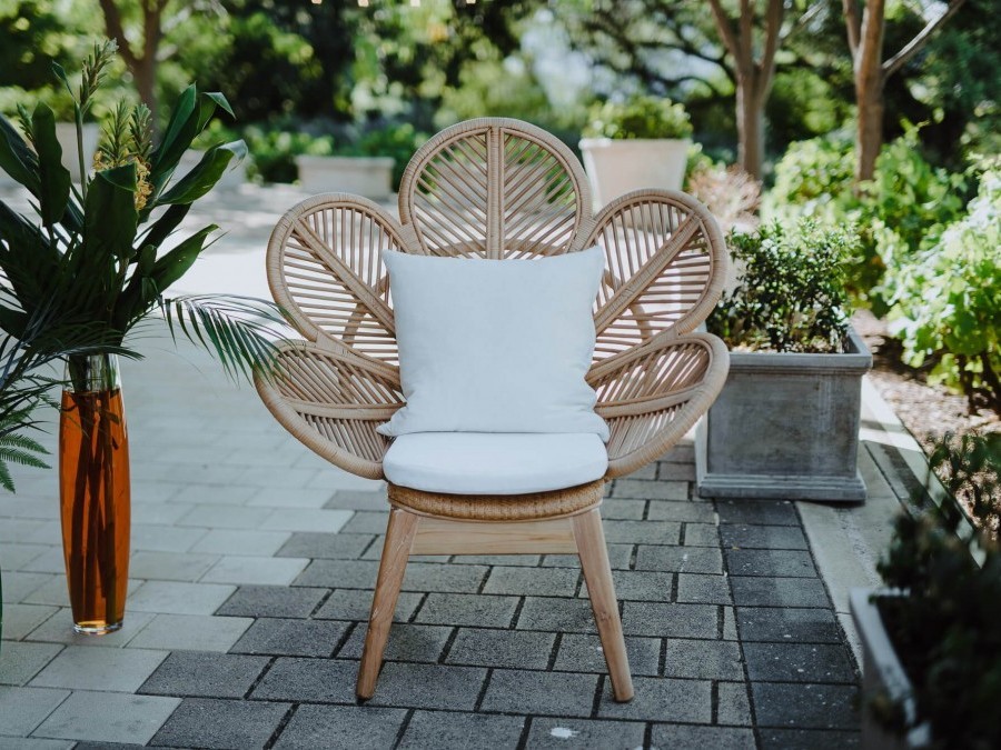 Reminiscent of balmy summer nights, our Lotus Armchair is boho chic at its best. Available in blonde oak and white, each chair comes with a crisp white cushion for added comfort. Mix and match with our bold red or green pillows to create a vibrant atmosphere, or pair back with soft pastels for effortless beauty. The perfect range for outdoor events, hire in pairs for an intimate seating option, or mix and match with our Lotus Lounge and Oregon collection for maximum comfort without compromising on style.