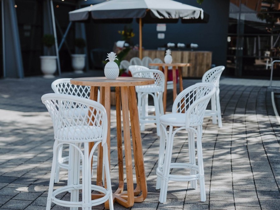 For those times when less is more, our Lotus High Bar Table is the perfect mix of clean, crisp lines and neutral colour tones. Standing at a comfortable height of 1.1m, our Luna High Bar Tables can easily be scattered throughout any space for guests to utilise as they need. Hire alone to encourage a laid-back vibe where guests mingle with ease, or pair back with our Lotus High Stools for an intimate dining option for groups of four. Perfect for use both indoors and out, our Lotus High Bar Table is ideal for your next event.