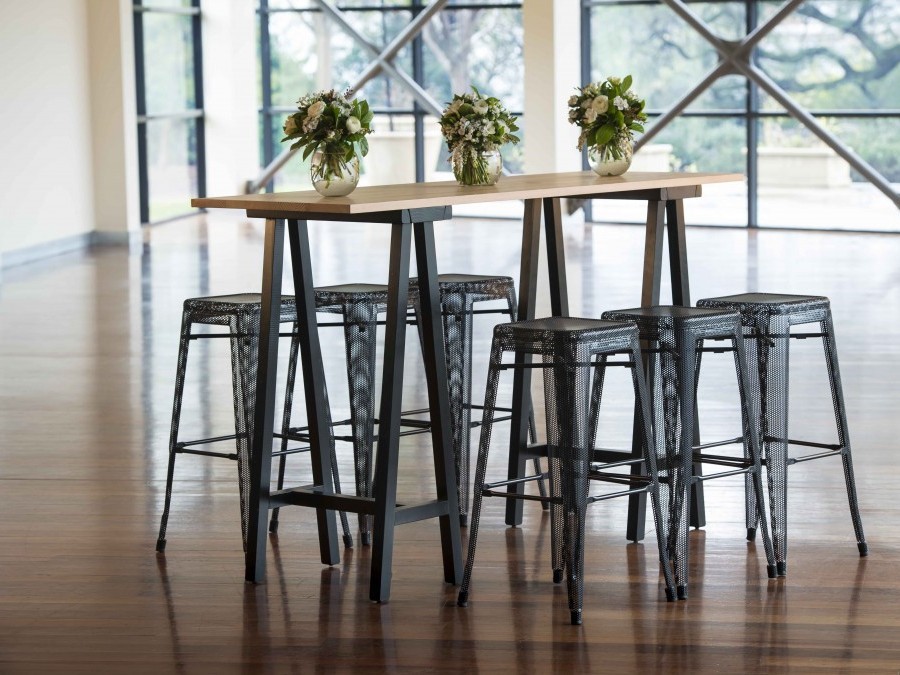 Our Oregon high bars are a sturdy design suitable for any event. Boasting a beautiful Oregon top with the option of either black or white legs, our Oregon high bars can comfortably seat eight. Hire in combination with our Cleo high stools for the perfect dining experience, or use alone as a freestanding table for guests to utilise as they need. Standing at a comfortable height of 1.1m, our Oregon high bars can be erected in minutes and are suitable for use both indoors and out.