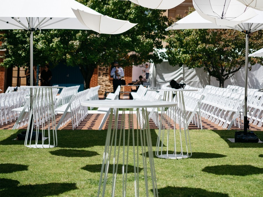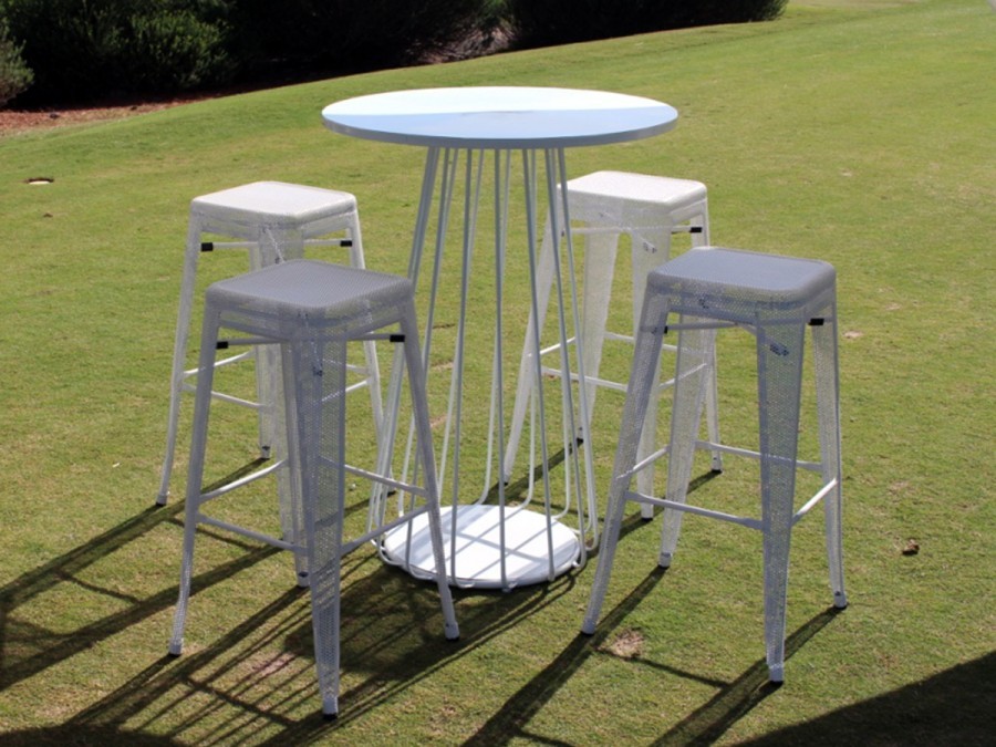Our hire bar tables are a classic style with a twist. Made from powder-coated steel, the sturdy designs are suitable for use both indoors and out, while the eye catching base adds an edge you won’t find anywhere else. Available in six colours that you can mix and match with ease and standing at a comfortable 1m in height, our cocktail tables are the perfect solution for any event that requires something other than traditional seating.