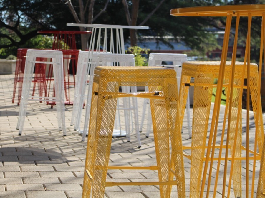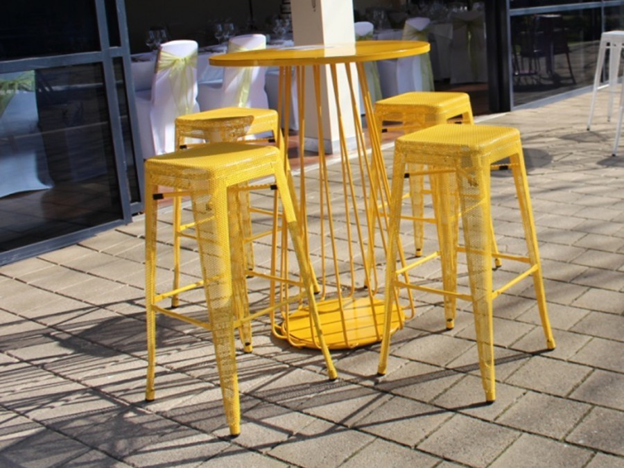 Our hire bar tables are a classic style with a twist. Made from powder-coated steel, the sturdy designs are suitable for use both indoors and out, while the eye catching base adds an edge you won’t find anywhere else. Available in six colours that you can mix and match with ease and standing at a comfortable 1m in height, our cocktail tables are the perfect solution for any event that requires something other than traditional seating.