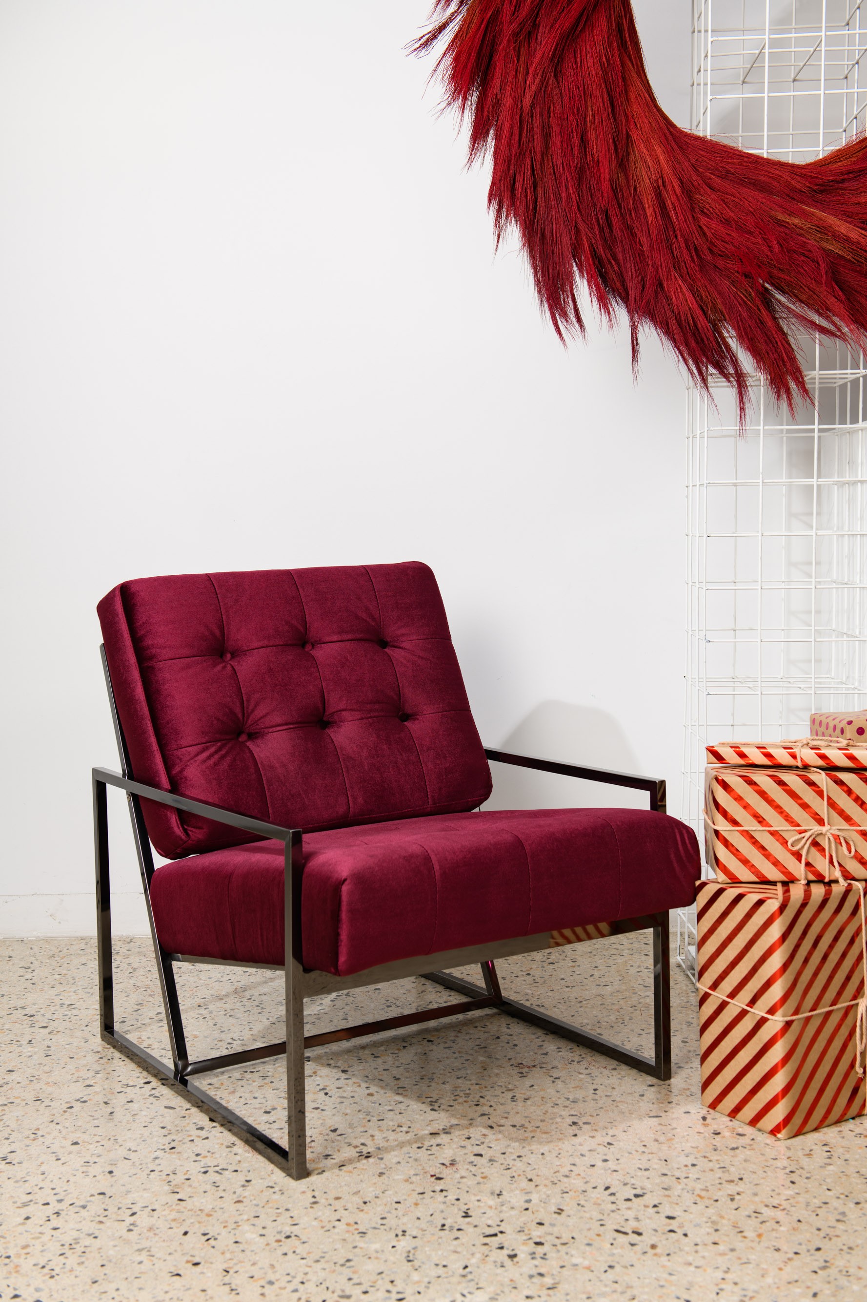 Zara Armchair Black Frame - Burgundy