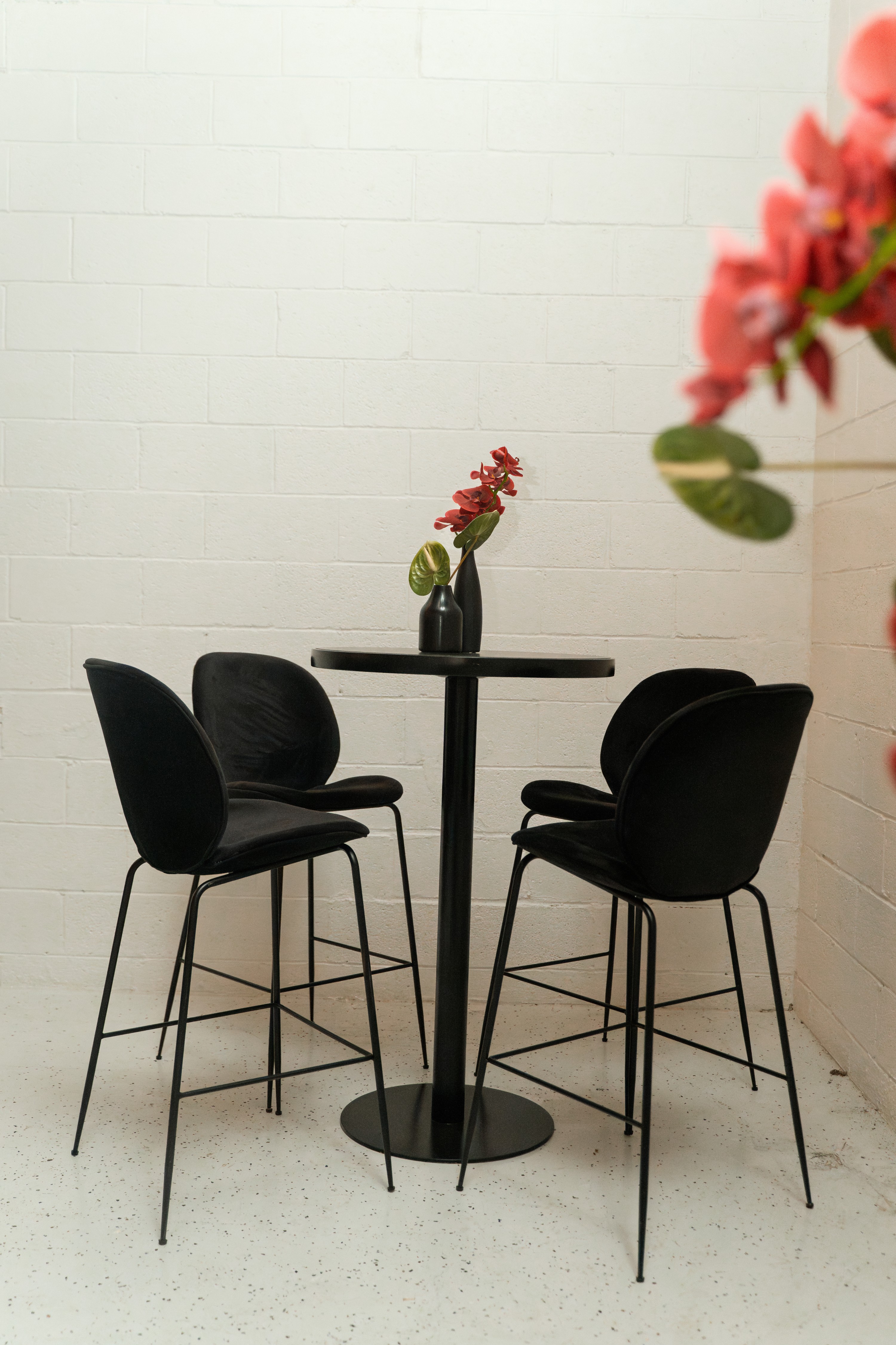 Sophisticated and plush, our Zara High Stools feature a luxe velvet cushion paired with your choice of sleek black or glamorous gold legs. Perfect for chic cocktail settings, bar areas, or upscale lounge spaces, they add a touch of elegance and comfort to any event.